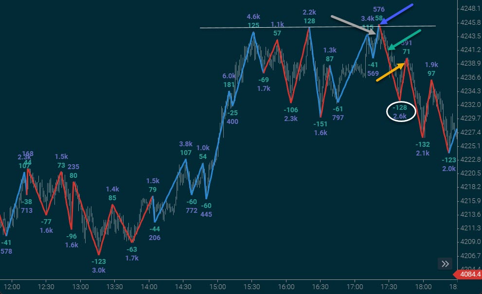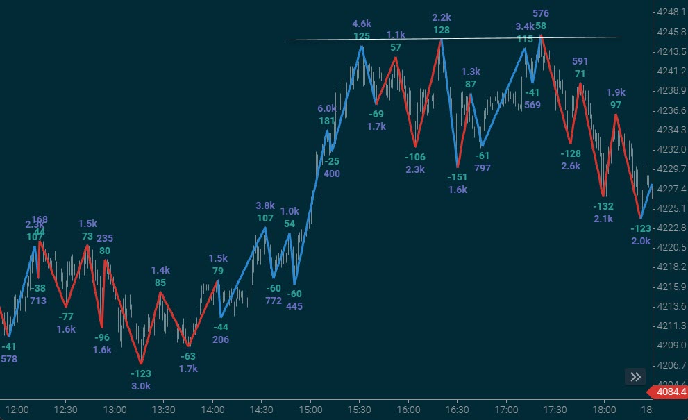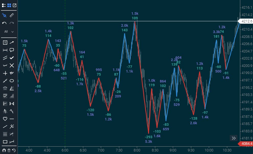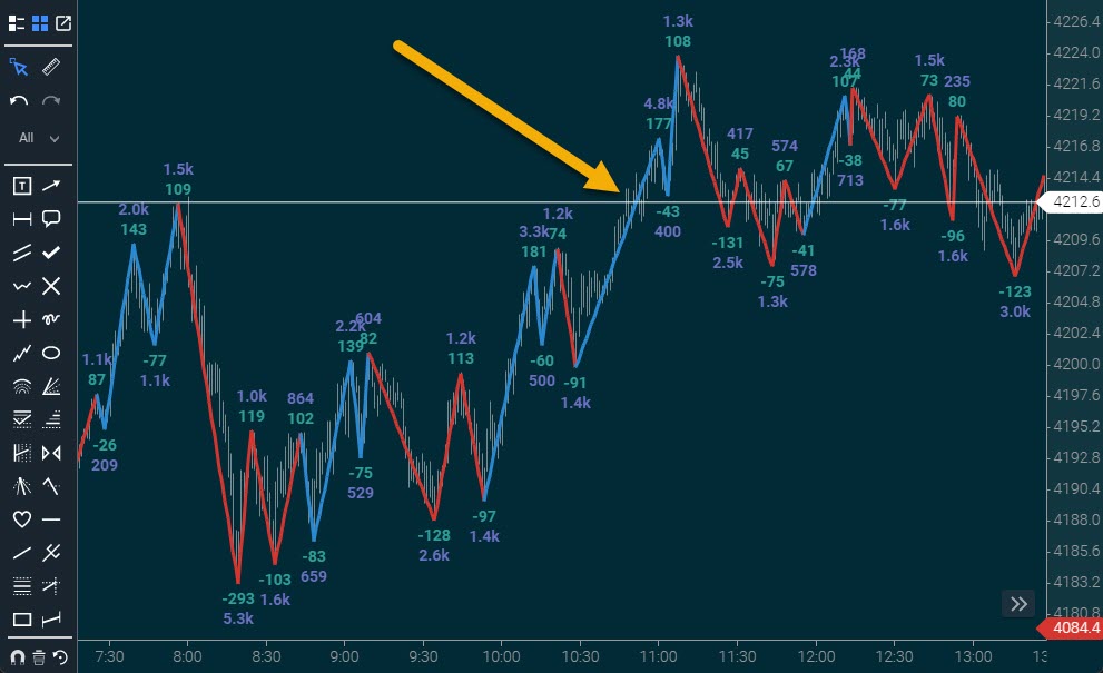 At Jigsaw, we advocate heavily using Order Flow and swing charts for confirmation. The idea behind that is you’ll see certain changes in trader participation there first, well before the chart shows it.